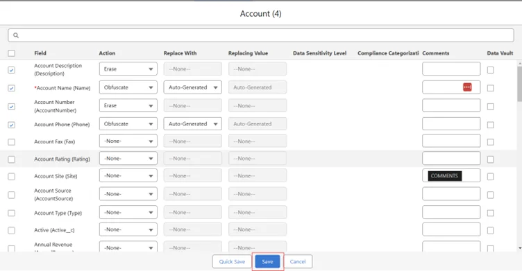 - Classification Settings: The user can De-identify the Object records as per the Data Classification and Data Sensitivity Level.