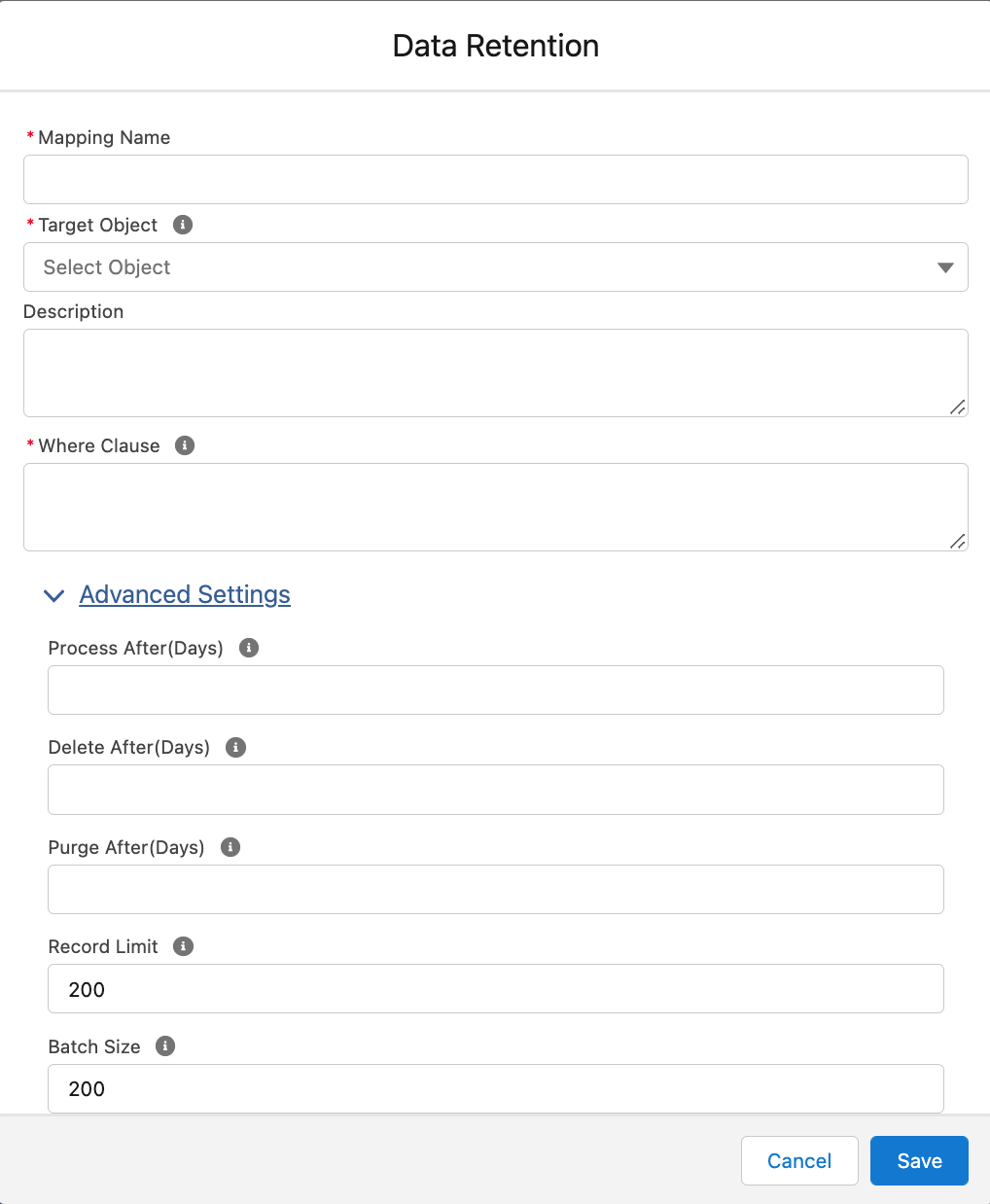 Target Object – In the “Target Object” field, you can select the object for which you want to perform data retention.