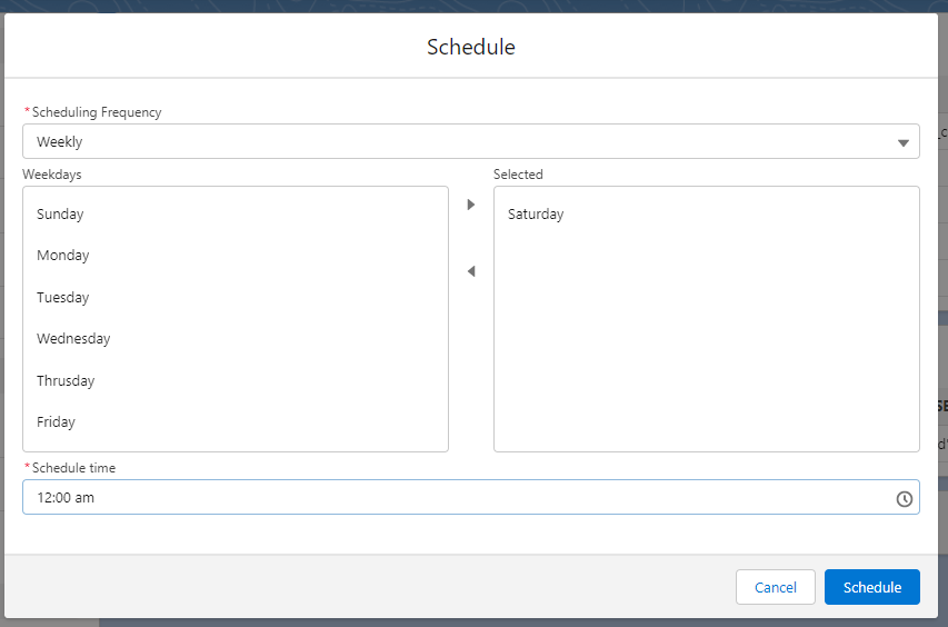 - In ‘Schedule,’ you can schedule a Data Retention process daily, weekly, or monthly. In ‘Time,’ you can provide the time at which the process needs to be scheduled for execution.