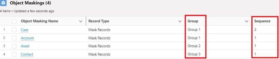 The Sequence criteria work within different Groups. The Sequence criteria allow you to decide the priority for an object to be masked within a Group. For example – an object that has a Sequence value of 1 will be masked first, and so on for an infinite number of values. Manually, you may set as many sequences in a single group as you can on both Standard and Custom Objects. - Batch size: