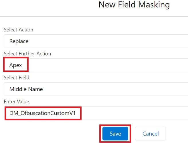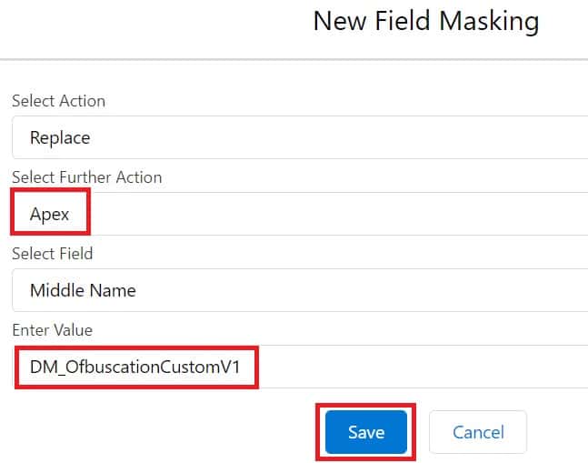 • Apex:- While selecting ‘Apex’ from Actions, choose the field by which you want to replace the selected field with Apex texts/strings.