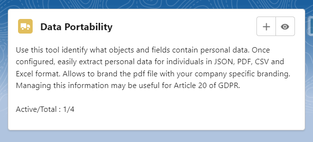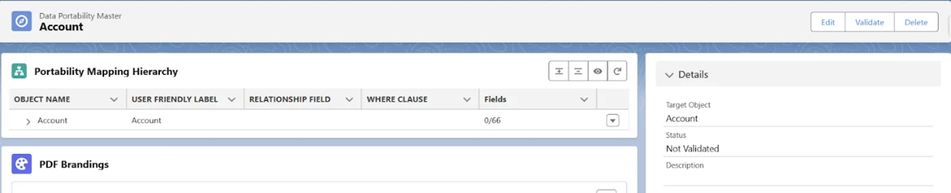 Apex in Portability: Allow admins and developers to post-process extracted data before file generation by plugging in a custom Apex class. The class implements teh class – ‘PortabilityExtractDataInterface‘ that receives the raw extracted payload and returns a modified payload that will be used to generate PDFs/exports.