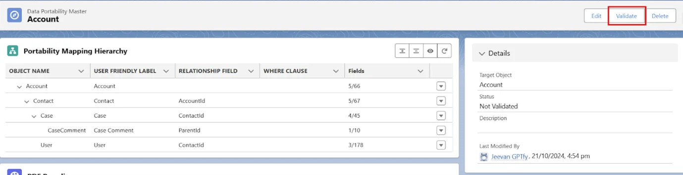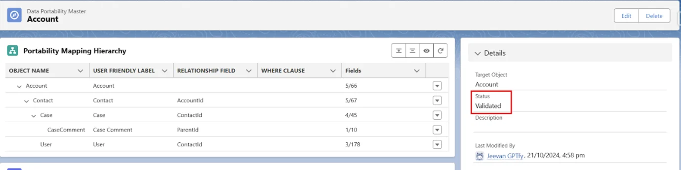 - Nth-level Data Portability allows the user to port data to any number of records attached to the objects in the hierarchy mapped.