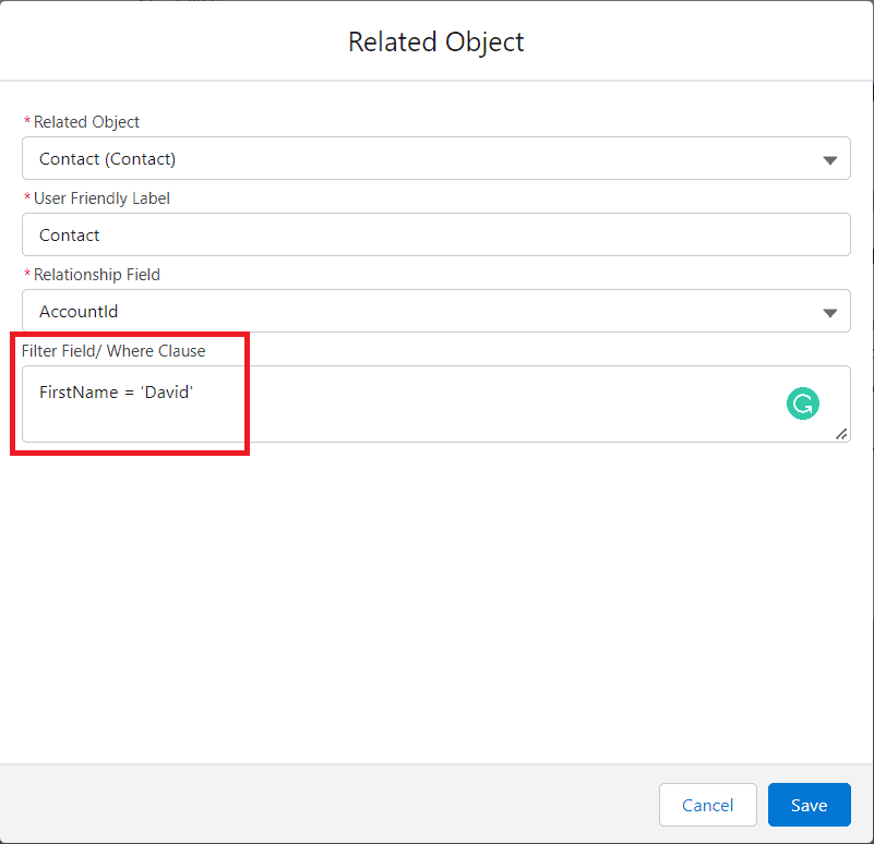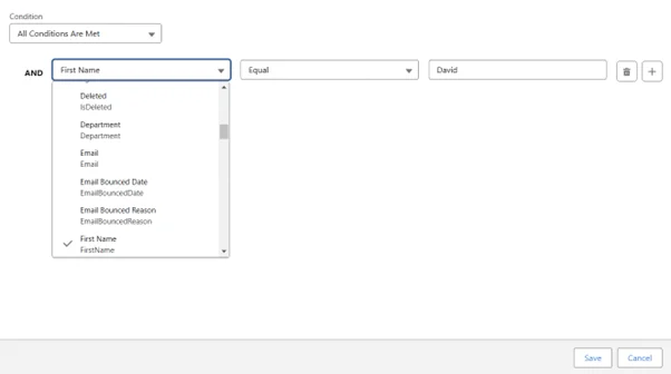 Where Clause: Filter records by entering a WHERE clause, and the filter field should be like FirstName = âDavidâ hence Data Portability will be performed only on those records where FirstName = âDavidâ as shown in the screenshot below.